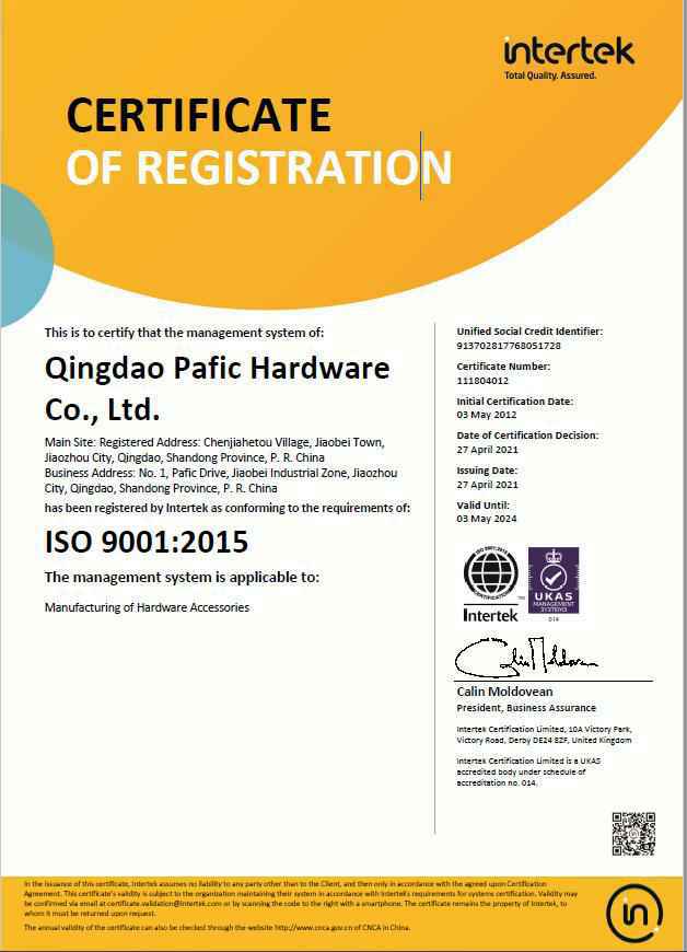 公司深知质量永恒定律,坚持质量是研发制造产品永恒的追求,是公司生存发展的根基,更是产品顺利进入国际市场的需要。在青岛公司创业初期2004年始,公司生产的一系列产品通过了BSCI, SEDEX,ISO9001:2015版质量管理体系和知识产权管理体系,实现国家安全及风险管控双体系认证模式。